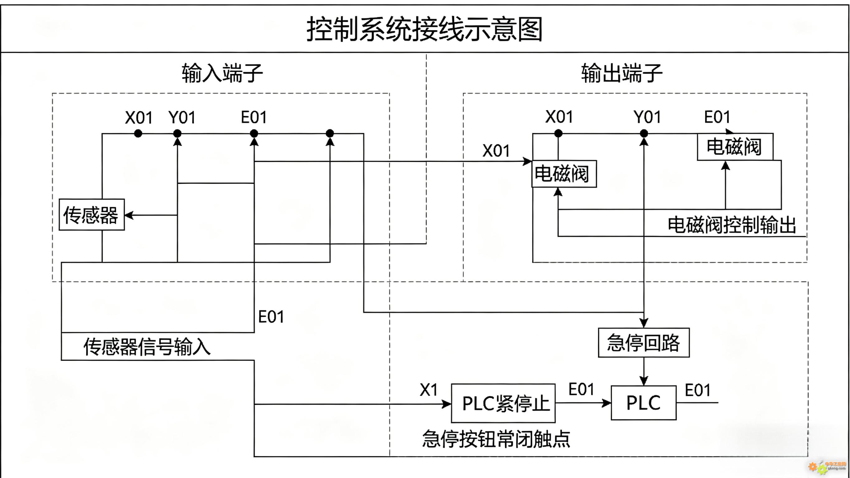 2.输入模块:包括光电传感器、磁性开关、接近开关、急停按钮等,用于检测工件位置、气缸行程、安全状态。