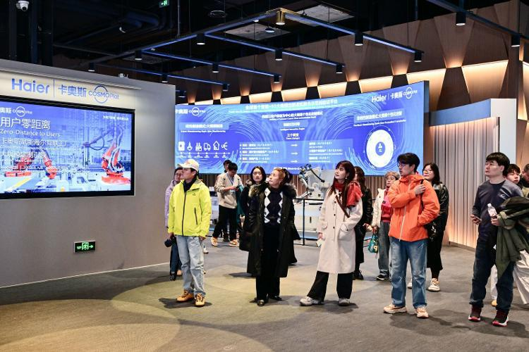 12月5日上午,由山东省委网信办主办,中国互联网发展基金会数字碳中和专项基金支持的“‘绿’动齐鲁 数智赋能”网络名人实践行活动走进海尔科创生态园。网络名人与媒体记者一同参观了1.6万平方米的生态体验中心,触摸海尔作为物联网生态品牌的创新脉络,感受AI与实体经济融合所带来的切实动力。