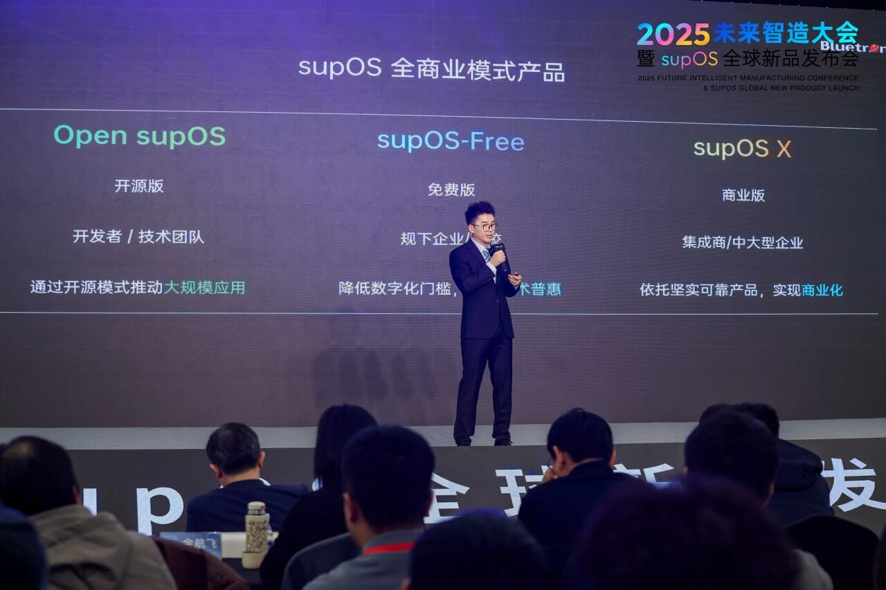 会上,蓝卓正式面向全球发布全新一代 supOS X工厂操作系统,以“1+2+N”新型智能工厂架构为核心,秉持开源开放的技术理念,为制造企业AI落地夯实数字底座。