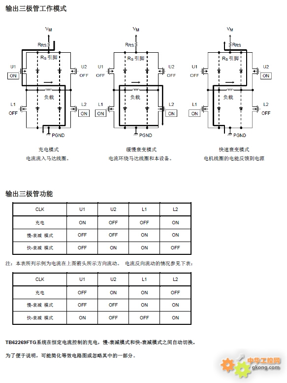 内部稳压器可用一种独立式VM电源对马达进行控制。