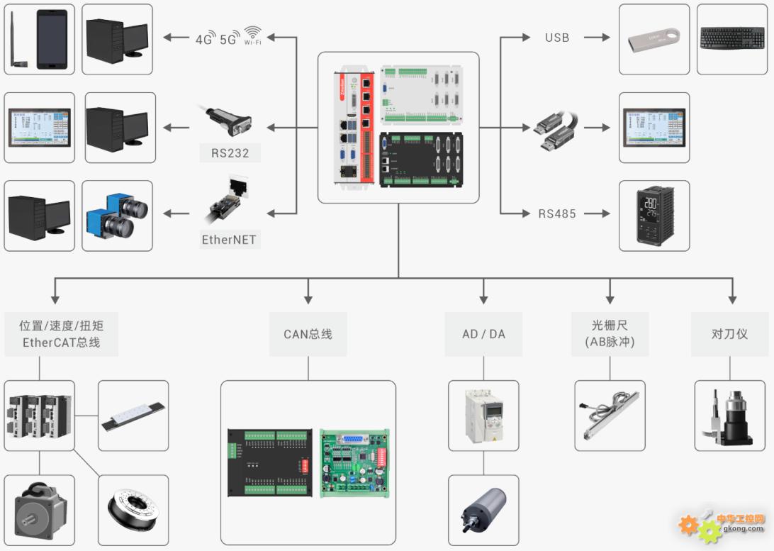 ● 板载RS232、RS485、EtherNet*4、EtherCAT、USB2.0*2、USB3.0*2硬件接口;