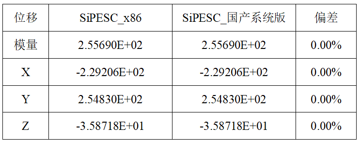 表:SiPESC_x86与SiPESC_国产系统版位移结果数据对比