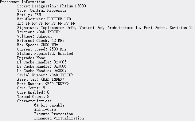 测试机配置:测试机使用华北工控MATX-6556工控主板,搭载飞腾D3000国产CPU处理器,具体硬件信息如下图所示: