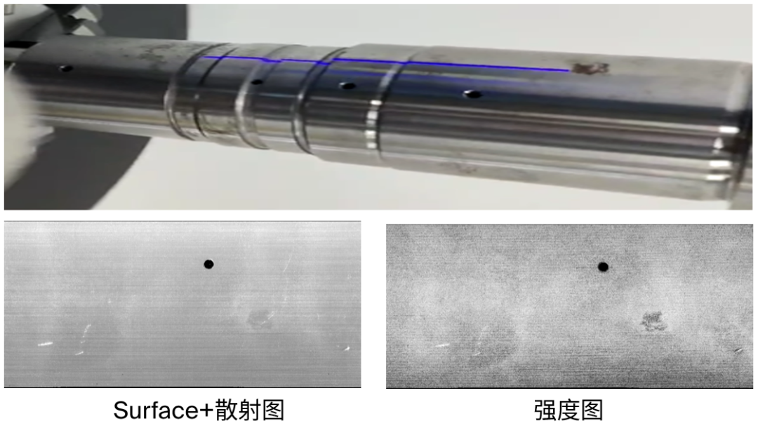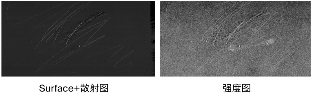 通过对比图像的Surface+散射图和激光强度图的效果,我们发现Surface+下采集的散射图比强度图的图像背景噪声较少,且对比度更加明显,方便后续图像处理。