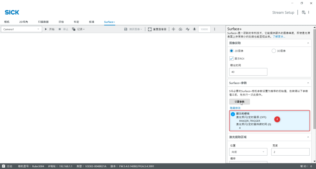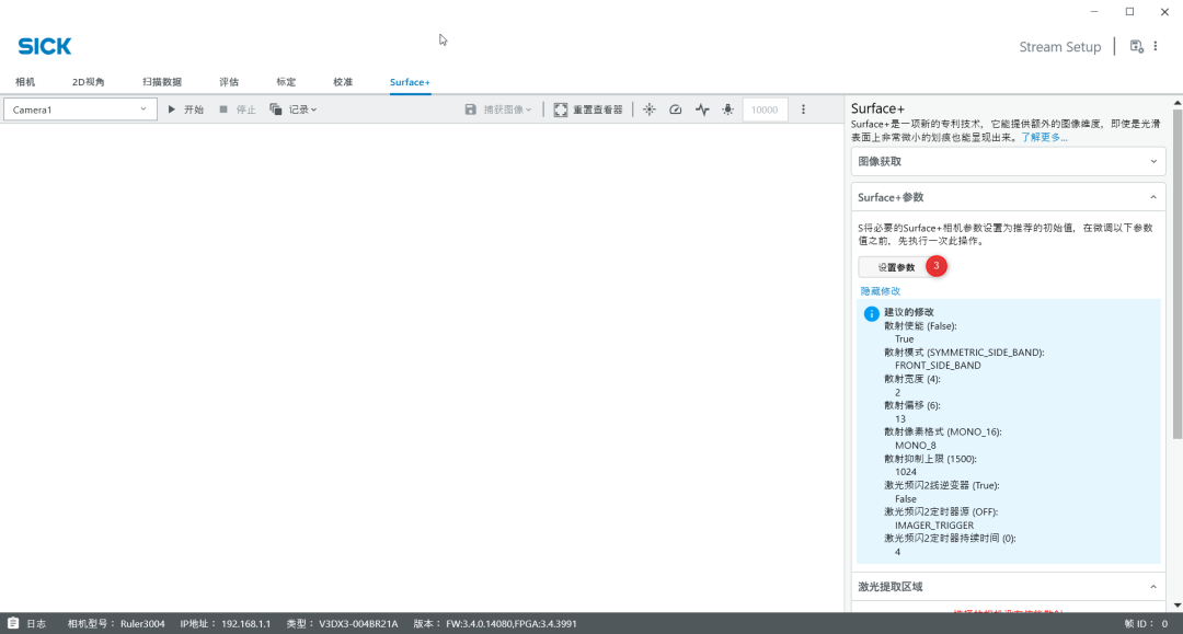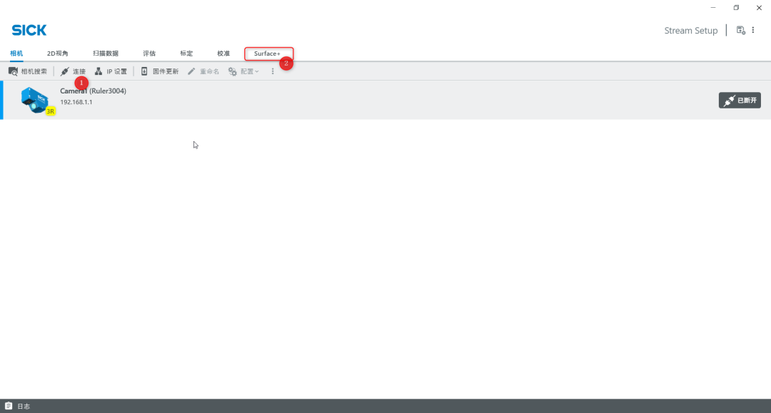 3、启动"Stream Setup软件",确保相机处于连接状态,点击"Surface+" ,进入到对应的设置界面