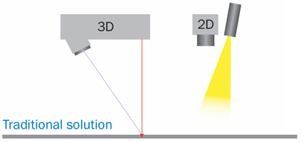 通过添加外部照明,在 Ruler3000/Ranger3 采集图像的过程中,类似2D线扫相机来获取2D图像,该2D图像可呈现额外的图像维度,且无需使用单独的二维视觉传感器。