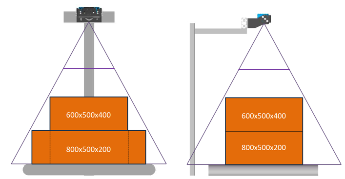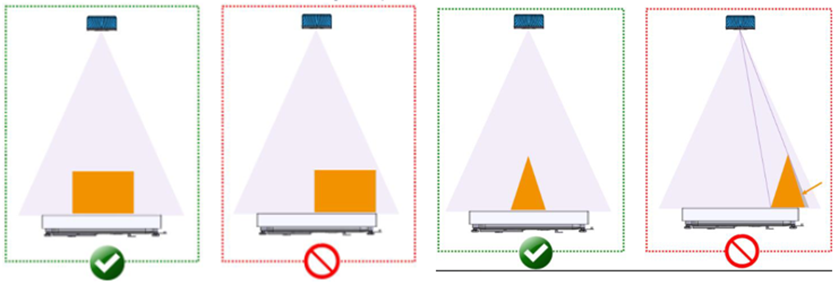 3. 左右两侧各自200mm的无包裹区域(测量时无干扰)避免底部为小扁平件,上面为宽度小与底部为扁平件的包裹(容易出现包裹阴影)