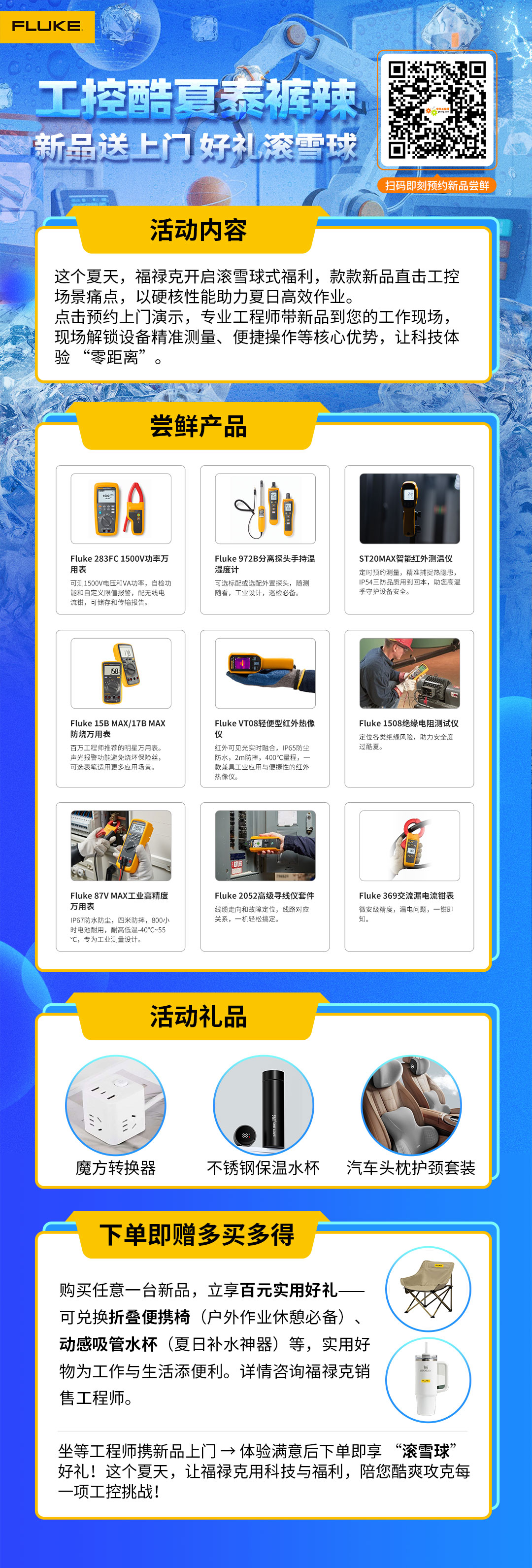 这个夏天,福禄克用硬核科技为你降温!新品上门演示+百元好礼,助你高效应对工控挑战!