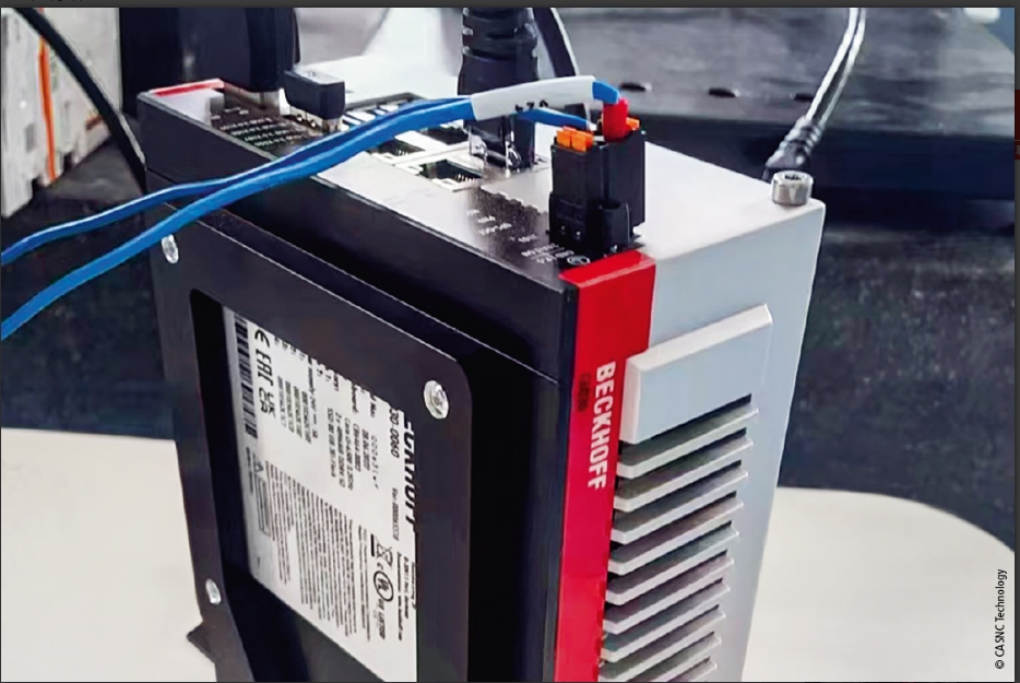 在控制核心方面,中科数控选用了搭载 Intel® Core™ i5 处理器的 C6030 超紧凑型工业 PC。通过使用 TwinCAT 软件,还可以充分发挥控制器强大的多核计算优越性能。中科数控的实践证明,这种配置不仅显著加快了控制器的处理速度,而且还缩短了伺服轴的控制周期,从而进一步提升控制精度。结合倍福的 EtherCAT XFC 端子模块,可以实现基于任务周期的超采样,也可以通过不依赖于任务周期的多时间戳来精准控制输入和输出模块。
