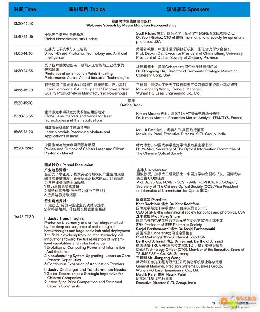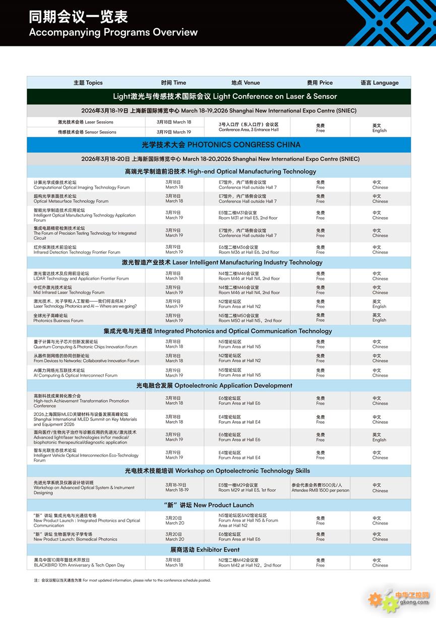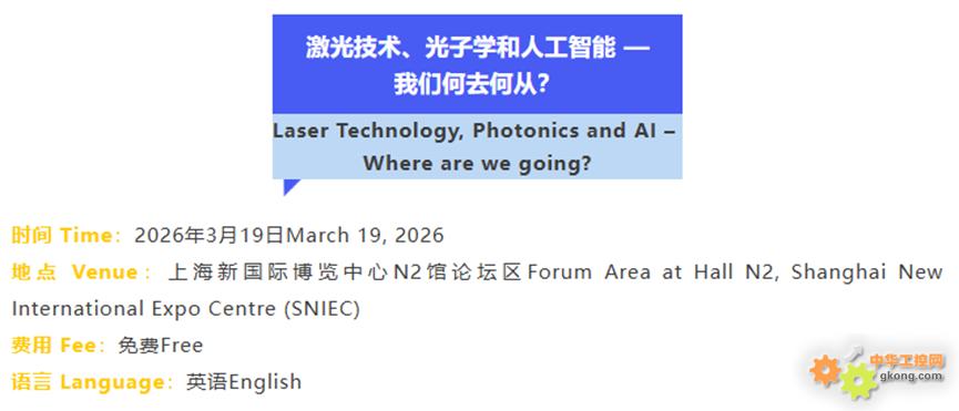 光学技术大会 PHOTONICS CONGRESS CHINA 将与慕尼黑上海光博会共同于2026年3月18-19日在上海新国际博览中心举办。