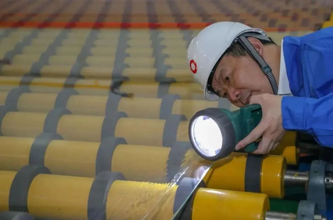 彭寿代表正在检查玻璃材料