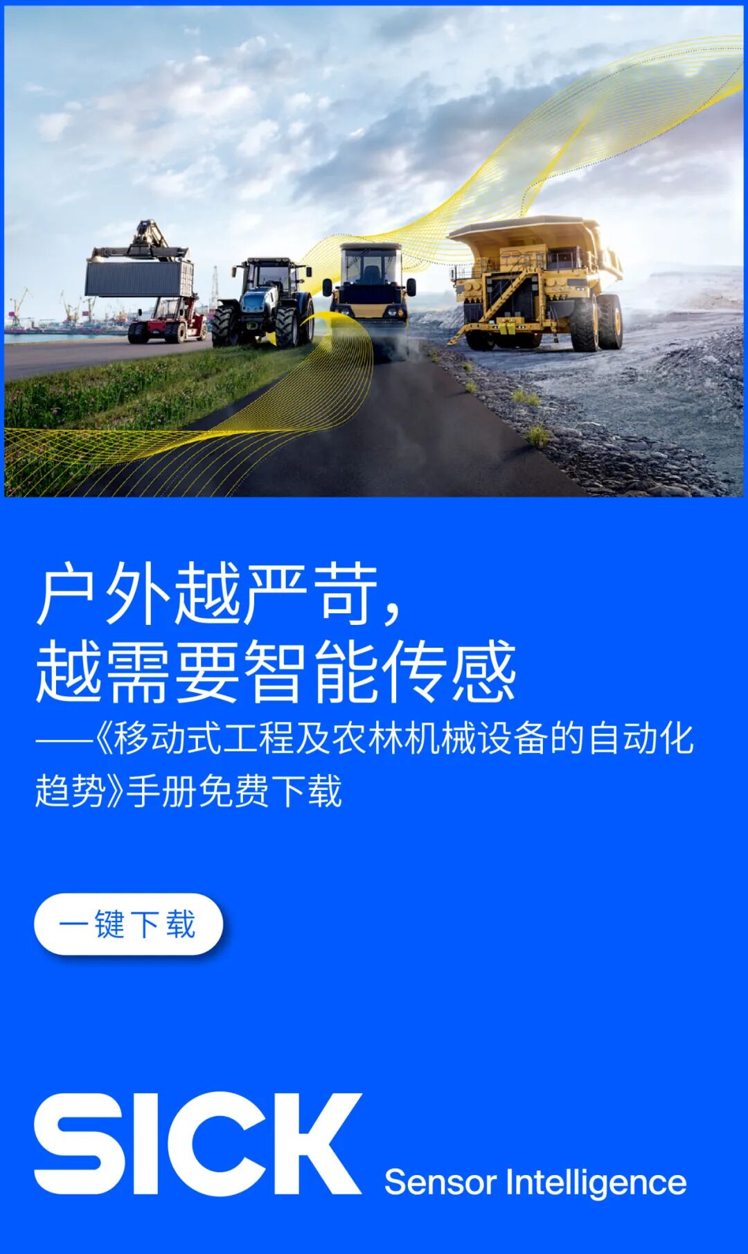 SICK 最新发布的《移动式工程及农林机械设备的自动化趋势》电子手册,为您系统梳理了从机械化到智能化的转型路径。手册涵盖: