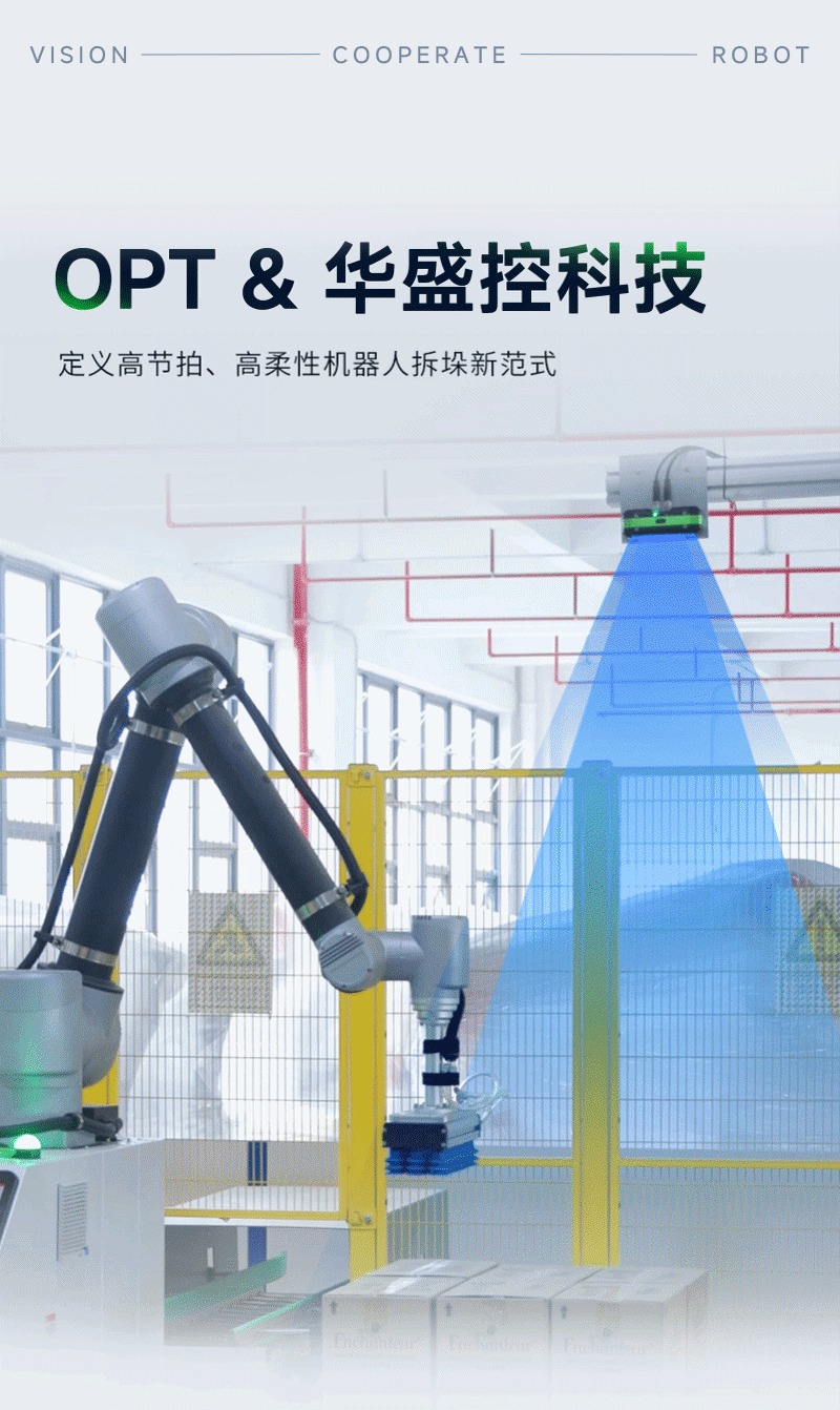近日,OPT与华盛控科技实现深度耦合,以智能3D视觉拆垛系统,助力打造具身机器人行业应用标杆,共同定义高节拍、高柔性的机器人拆垛新范式。