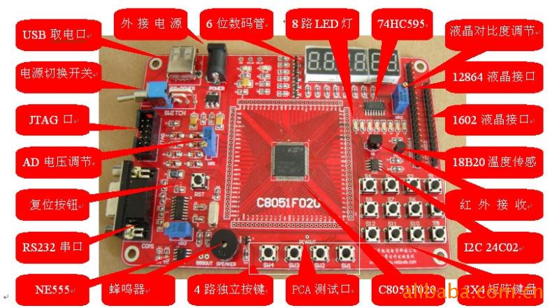 一、C8051F020单片机学习开发板特色1.两种供电方式 ,USB直接供电和外接5V电源供电,通过电源开关切换,灵活方便。