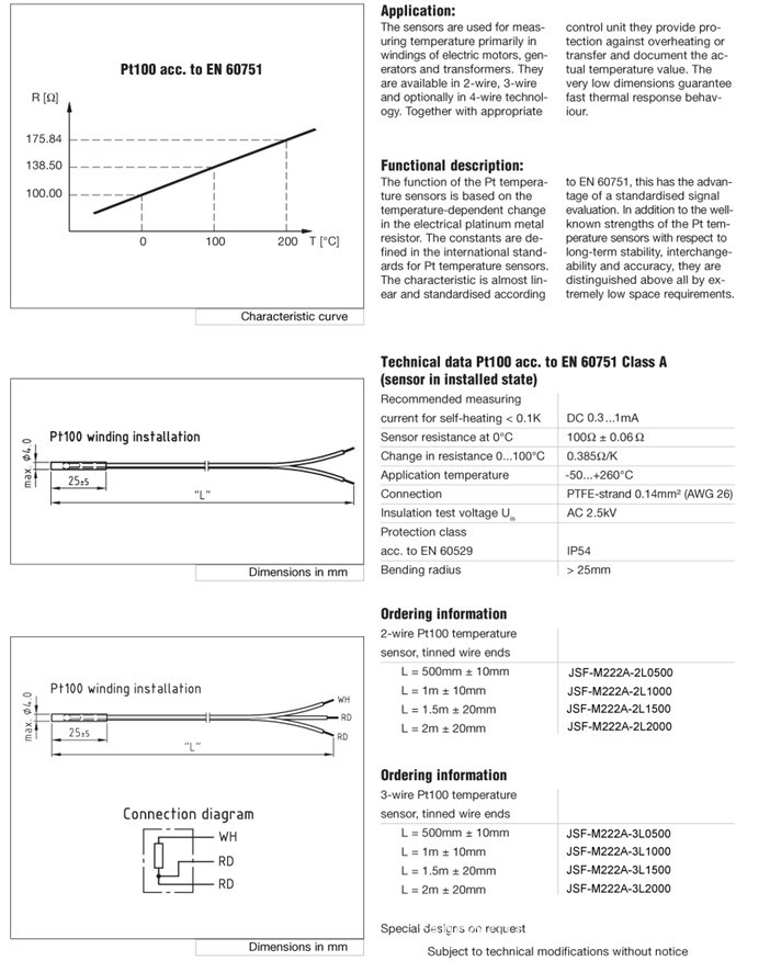 产品名称: PT100传感器 电机绕组温度传感器