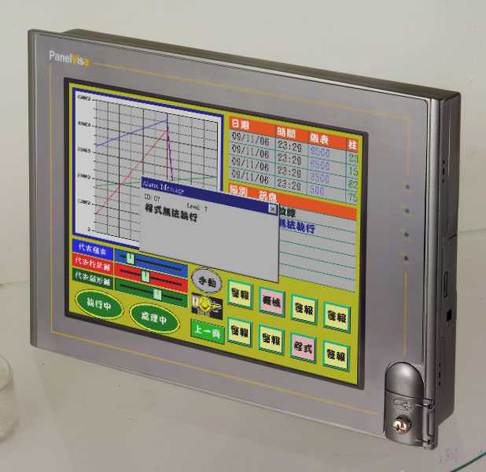 产品简介 <特色> 1.提供90度直立式的显示设计 2.高质量百分之百产品测试及工业级烤漆外壳,美观大方 3.采用32位高功能、高可靠度且免风扇之中央处理器 4.采用全彩65535色及高亮度TFT彩色液晶 5.标准配备3个通讯端口,提供RS232/422/485通讯使用 6.标准128KB电池备份内存供报警、配方、数据记录使用(可扩充至1MB) 7.支持多国语言文字,Windows内建所有字型,BMP,JPG图档,GIF动画 8.提供PanelMaster专用软件,支持通透式的三方编辑,节省你工程调试的宝贵时间 9.专利的前面板镂空设计,可让您随心所欲的贴上自己的LOGO 10.提供扩充接口, 可扩充客制化定位/温度/通讯/开关等各式各样扩充卡使用