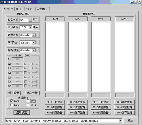 EMBC1000-PCI429提供应用软件,对接收、发送的数据进行从字到位的完整分析。而且提供32位动态链接库及示例程序,支持Microsoft VC++等开发工具,方便用户进行二次开发。