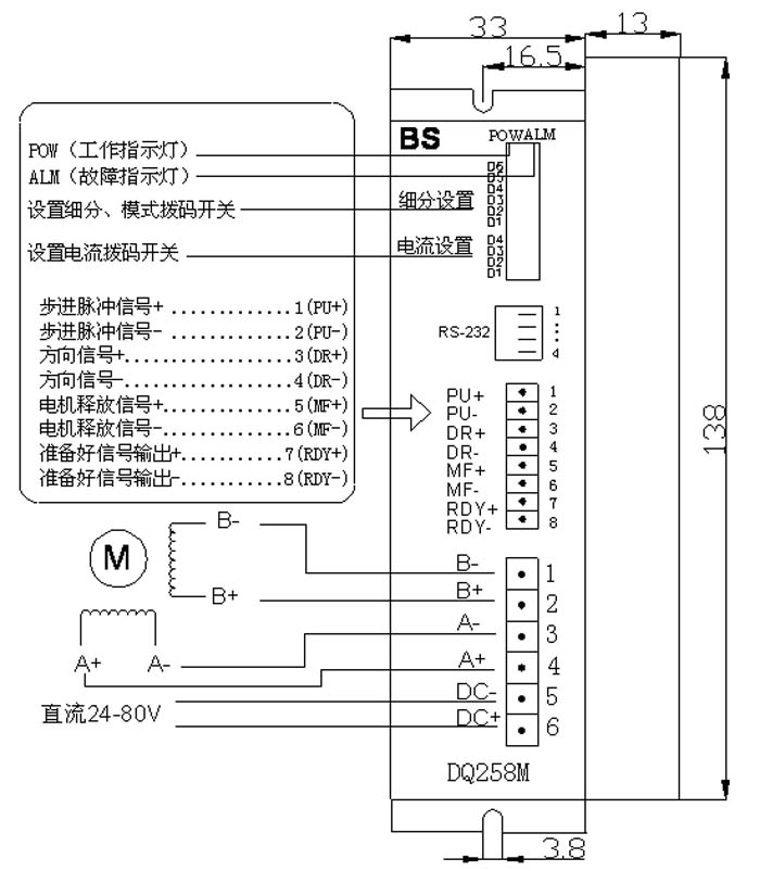 驱动器接线、尺寸示意图 (单位;mm)