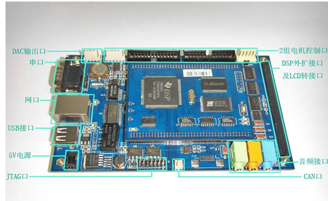 JTAG接口:DSP仿真器连接接口,可进行在线仿真和烧写程序。
