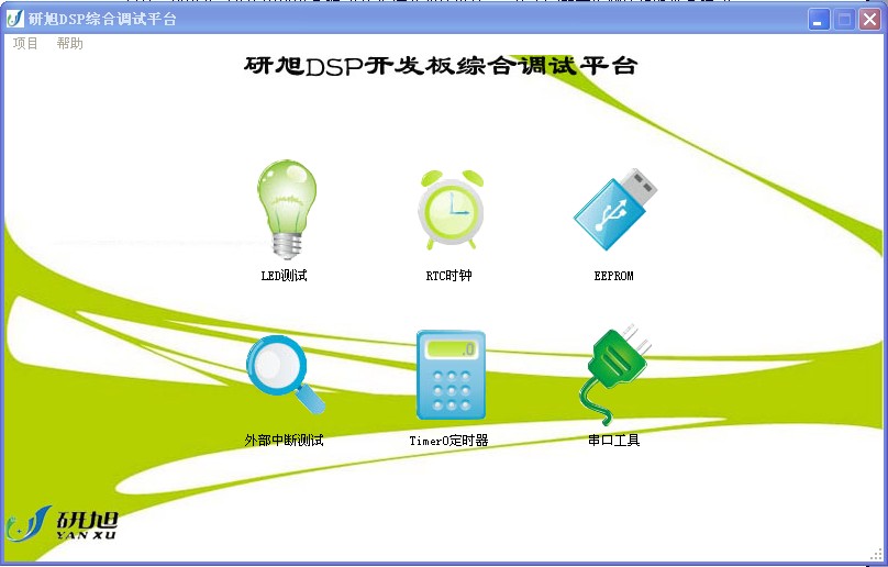 为了广大新手在首次接触到研旭DSP开发板能够方便简单快捷的熟悉和判断开发板的好坏,研旭公司开发出研旭DSP开发板综合调试平台,方便大家的首次测试和熟悉DSP开发板。