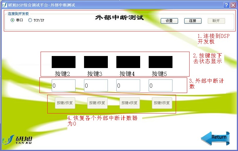 研旭DSP开发板综合测试软件使用说明