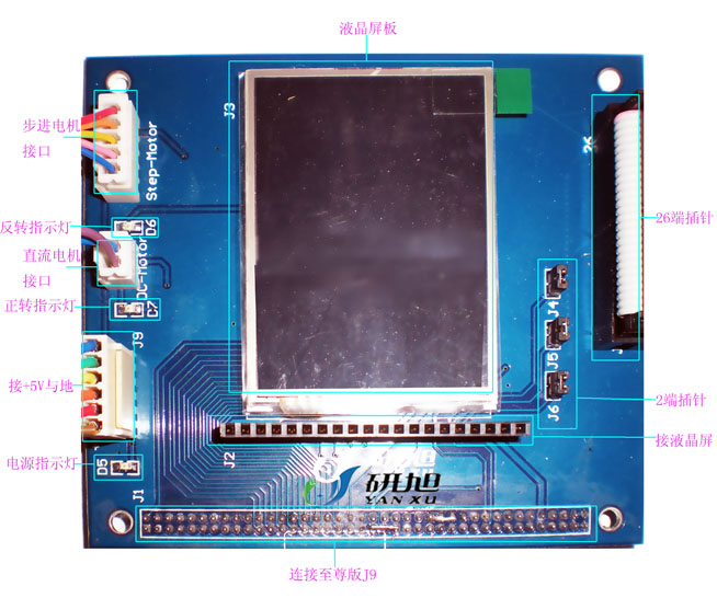 J1:80端插针,连接至尊版J9,控制液晶屏显示