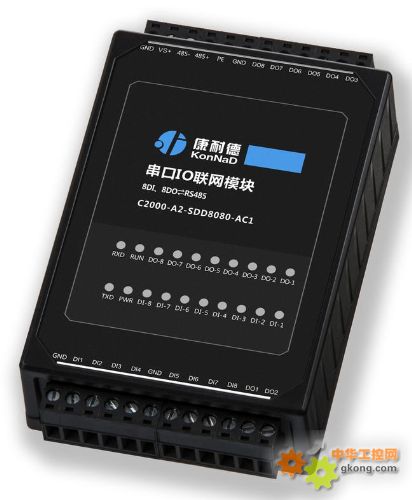 C2000 A2-SDD8080-AC1为8路数字量输入(DI)和8路数字量输出(DO)串口IO联网设备,DO为8路继电器输出,采用标准的Modbus RTU通讯协议,可以通过RS485总线进行远程DI数据采集传输。