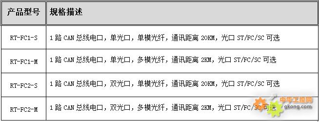 - RT-FC1,一路光纤接口,支持点对点通讯结构