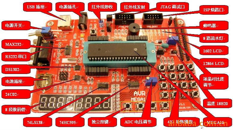 1.本开发板采用Atmel公司的ATMEGA16微控制器来设计。该开发板采用模块化设计,所有I/0口都是独立的,用户可根据自己需求来更改不同的I/0口,以便满足用户的不同需要。该开发板模块功能非常丰富,结构设计合理,是学生学习和工程师开发的良好平台,通过本开发系统可以帮助您快速的掌握AVR单片机的基础知识。