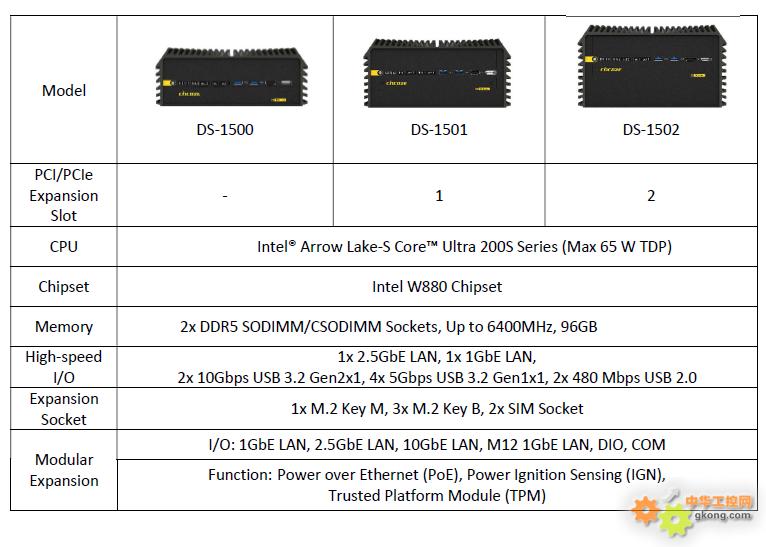 DS-1500系列是一款高性能、可扩充的强固型嵌入式工控机,除了强大的性能外,更拥有丰富的I/O接口和强大的功能性。为满足不同的应用需求,除了拥有至多2x PCI/PCIe扩充能力外,专属的模块化设计能灵活扩充I/O和特定功能。此外,DS-1500系列通过多项国际认证,确保在多样化的严苛环境中发挥稳定可靠的效能,是智能制造和轨道交通等应用的理想选择。