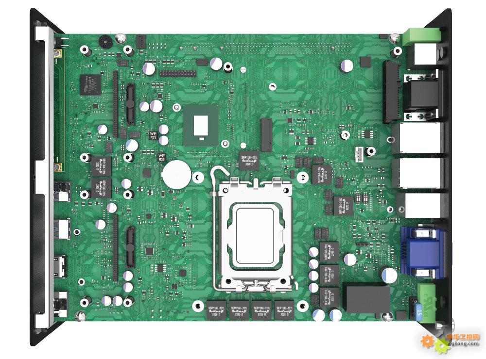 配备两组内存插槽,可支持96GB 6400MHz DDR5 CSODIMM内存,并具备ECC(Error Correction Code)错误修正技术,对于稳定性与可靠性要求极高的工控领域至关重要。